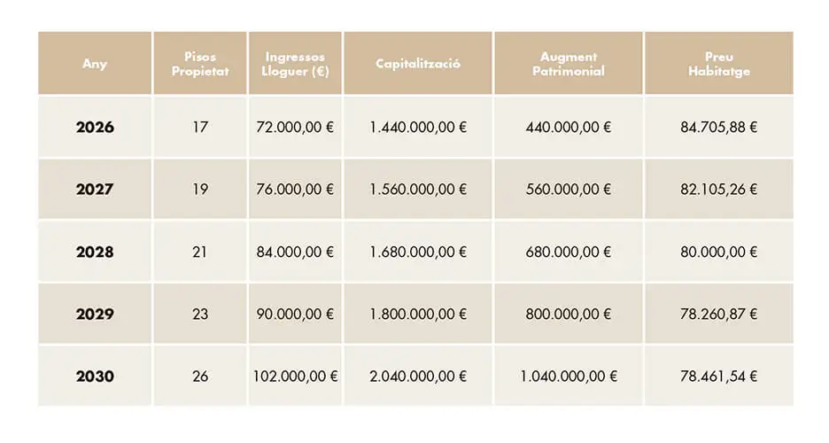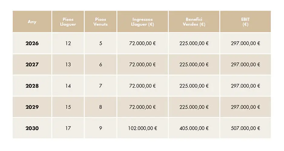 2.-Construir un parc de 20–25 habitatges en 5 anys, amb un mix de vendes i lloguers.