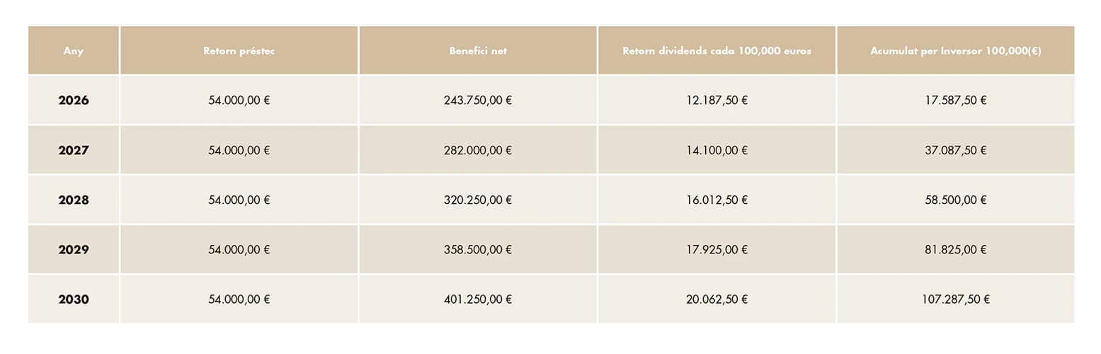 > Innovació financera: model híbrid capital + préstec amb doble retorn.